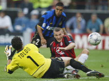 為AC米蘭掃清前進(jìn)路上障礙的是他們的頭號(hào)射手舍甫琴科。這位有著“烏克蘭核彈頭”之稱(chēng)的前鋒在上半場(chǎng)的傷停補(bǔ)時(shí)階段打入了雙方兩場(chǎng)半決賽中最重要的一粒入球,——前國(guó)際米蘭球員西多夫妙傳舍甫琴科,舍甫琴科在擺脫了國(guó)際米蘭隊(duì)幾名后衛(wèi)的防守后,在對(duì)方門(mén)前近距離處用右腳將球送入意大利國(guó)門(mén)托爾多把守的大門(mén)。