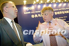 博鰲亞洲論壇五月十三日在北京舉行《SARS與亞洲經(jīng)濟(jì)的影響評(píng)估與政策建議研討會(huì)》,來自國際組織和商會(huì)、跨國公司、亞洲有關(guān)國家駐華使館、中國政府有關(guān)部門、國際和當(dāng)?shù)孛襟w的代表數(shù)十人參加會(huì)議。中新社記者 毛建軍 攝