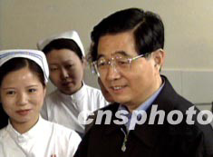 中新網(wǎng)5月14日電 5月11日至14日,中共中央總書記、國(guó)家主席胡錦濤近日在四川考察工作時(shí)強(qiáng)調(diào),各級(jí)黨委和政府一定要從實(shí)踐“三個(gè)代表”重要思想的高度,充分認(rèn)識(shí)一手抓防治非典、一手抓促進(jìn)發(fā)展的極端重要性,萬(wàn)眾一心抗非典,迎難而上促發(fā)展,奪取防治疫病和經(jīng)濟(jì)建設(shè)雙勝利。