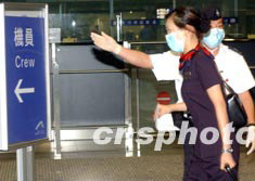 近日,香港“非典”疫情逐漸趨于穩(wěn)定,香港機場管理局仍嚴格執(zhí)行各項預(yù)防“非典”措施,所有機組人員需通過體溫探熱后方可登機。 中新社傳真 錢興強 攝