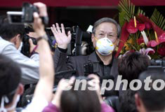 五月十六日下午,與SARS抗?fàn)幜硕奶斓闹袊?guó)內(nèi)地著名電影導(dǎo)演謝飛康復(fù)出院。謝飛因患SARS于四月二十二日進(jìn)入北京地壇醫(yī)院接受治療。中新社記者:張煒