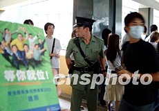 香港賽馬會五月十七及十八日在會展中心舉行“香港賽馬會招聘博覽會”,提供三千六百個職位空缺。吸引五千多名市民及應(yīng)屆學(xué)生頭頂烈日,在金紫荊廣場排長龍入場應(yīng)聘。作者:洪少葵
