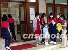 香港42萬幼稚園、幼兒中心、初小及特殊學(xué)生19日復(fù)課。由于“非典”疫情受到一定控制,有家長對復(fù)課安心。譚達(dá)明 攝