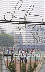 近一周來,中國各地學(xué)生沒有新發(fā)病例報告,全國非典型肺炎防治組疫情分析專家聶軍認為,學(xué)生中的疫情已得到基本控制。圖為復(fù)課后的北京高考生積極進行戶外體育鍛煉。作者:廖文靜
