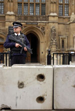 中新網(wǎng)5月24日電 據(jù)英國《泰晤士報》報道,為了避免倫敦市尤其是英國國會大廈遭受恐怖分子的襲擊,倫敦市日前全面加強(qiáng)了警戒措施。一夜之間,英國國會大廈的門口道路已經(jīng)豎起了一道水泥城墻。倫敦市警方也全面提高了整個倫敦市的安全戒備級別。