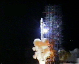 按預(yù)定發(fā)射計(jì)劃,25日零時(shí)34分,“長征三號甲”運(yùn)載火箭托舉著“北斗一號”導(dǎo)航定位衛(wèi)星成功升空。20分鐘后,星箭分離。根據(jù)西安衛(wèi)星測控中心實(shí)時(shí)傳來的測控?cái)?shù)據(jù),衛(wèi)星準(zhǔn)確進(jìn)入預(yù)定軌道。