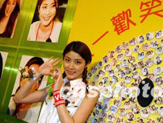 香港紅星陳慧琳五月二十五日在此間代表公益金接受“一人一歡笑”慈善大行動支票轉贈。圖為陳慧琳笑逐顏開,向眾歌迷傳遞歡笑。中新社傳真 潘索菲 攝