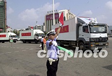 中新社澳門五月二十七日電(記者孫兆震)應(yīng)澳門特區(qū)行政長官何厚鏵的請求,中央政府向澳門無償支援了一批抗擊非典型肺炎的醫(yī)用物品。今天上午在珠海拱北口岸,全國政協(xié)副主席、國務(wù)院港澳辦主任廖暉代表中央政府向何厚鏵送交了這批物品。