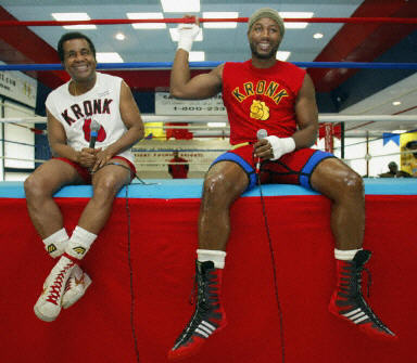 北京時(shí)間5月30日凌晨,英國拳王劉易斯為備戰(zhàn)與約翰迅的WBC重量級(jí)拳王爭霸賽,在賓西法尼亞進(jìn)行訓(xùn)練。圖為劉易斯訓(xùn)練前接受采訪。