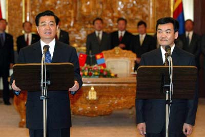 胡錦濤說(shuō),為在新世紀(jì)使中蒙關(guān)系邁上新臺(tái)階,中方建議: