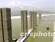 圖:三峽永久船閘導(dǎo)航堤加緊安裝