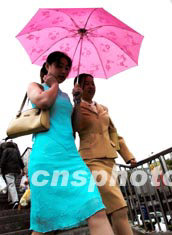 青春靚麗的北京姑娘在淅淅瀝瀝的小雨中到商業(yè)街購(gòu)物。中新社記者:鄒憲