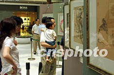 年過(guò)八旬的國(guó)畫大師程十發(fā)先生,十五日在上海恒隆廣場(chǎng)舉行“桃李情·程十發(fā)師生藝術(shù)畫展”,吸引眾多上海市民前往參觀。作者:湯彥俊