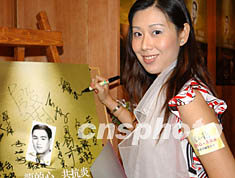 曾獲香港國(guó)際親善小姐稱(chēng)號(hào)的殷莉,六月十四日出席在香港舉行的「龍的心、共抗炎,李小龍慈善珍藏電話卡公開(kāi)發(fā)行」活動(dòng)。錢(qián)興強(qiáng) 攝
