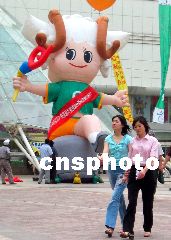 2003年9月,第六屆全國殘疾人運(yùn)動會將在江蘇南京舉行,近日,殘疾人運(yùn)動會的吉祥物“羊羊”出現(xiàn)在南京街頭。又又 攝