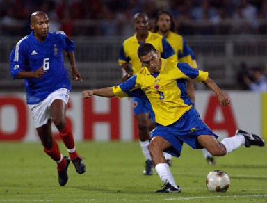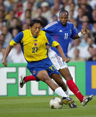 哥倫比亞隊目前正處于進(jìn)球荒,在這場比賽之前,該隊已經(jīng)有5場比賽沒有入球。不過本場比賽面對衛(wèi)冕冠軍法國隊,他們卻絲毫沒有表現(xiàn)出弱隊的樣子。法國隊缺少了中場大將齊達(dá)內(nèi)和維埃拉,球隊進(jìn)攻組織有些凌亂。上半場,場上局面僵持,法國隊也只有一兩次像樣的進(jìn)攻。