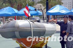 2003年6月22日,香港警務(wù)處在香港維多利亞公園舉行的“同心攜手畫出彩虹”嘉年華活動上,展示警用“海騎式硬體脹氣艇”。中新社記者 錢興強
