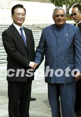 會談前,溫家寶總理在人民大會堂東門外廣場為瓦杰帕伊總理舉行了隆重的歡迎儀式。會談結(jié)束后,雙方將舉行有關(guān)文件的簽字儀式。