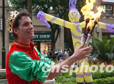 圖為小丑興高采烈舞動(dòng)火把。