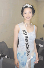 據(jù)當(dāng)?shù)厝A文媒體報(bào)道,加拿大倫敦市十九歲女生梁珍妮,可謂天生麗質(zhì),經(jīng)任職的模特兒機(jī)構(gòu)一再慫恿下,梁珍妮報(bào)名參加由加拿大國家選美大會主辦的2003年選美盛會,經(jīng)過大會審核后獲得參選資格,并且于六月二十日和二十一日兩晚,經(jīng)過預(yù)賽最后正式進(jìn)入準(zhǔn)決賽,代表加拿大Ingersol市與其他參選者角逐“加拿大妙齡小姐”的頭銜。