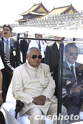 “這是很值得參觀的地方,”瓦杰帕伊說。二十四年前,時任印度外長的瓦杰帕伊第一次訪問中國時曾到過故宮。今天,再次來到這里,瓦杰帕伊已是滿頭白發(fā)。