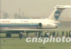 中國(guó)民用航空總局二十四日公布的初步調(diào)查結(jié)果表明:北方航空公司一架麥道82客機(jī)二十三日在大連機(jī)場(chǎng)著陸時(shí)沖出跑道與機(jī)組操縱不當(dāng)有關(guān)。 中新社 圖