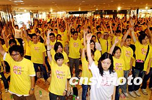 香港首名成功攀登世界高峰的選手鍾建民,6月28日出席「擦亮香港大行動」,受到市民及學生的歡迎,鍾建民勉勵港人不畏艱險,拋開SARS困惑為重建香港出力。作者:洪少葵
