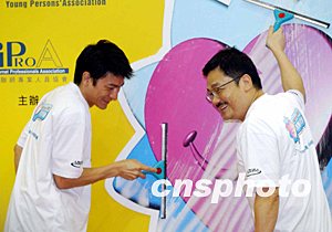 6月28日,香港著名藝人劉德華與漫畫家黃玉郎應邀出席擦亮香港大行動-“義”氣青年發(fā)動儀式,為百多名青年義工鼓勵打氣。作者:洪少葵
