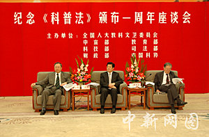 為此,中國全國人大教科文衛(wèi)委員會、中共中央宣傳部、教育部、科技部、司法部、財(cái)政部和中國科協(xié)二十九日聯(lián)合在北京人民大會堂舉行座談會,紀(jì)念這一世界首部科普法規(guī)誕生一周年。