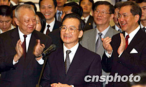 六月三十日,國(guó)務(wù)院總理溫家寶在香港大學(xué)發(fā)表講話。中新社記者 潘索菲 攝