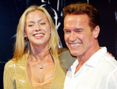 7月2日,好萊塢動作明星施瓦辛格(右)和美國影星克里斯蒂娜·洛肯在東京出席他們主演的新片《終結(jié)者3》的新聞發(fā)布會!督K結(jié)者3》將于7月12日在日本公映。