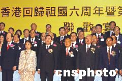 中新網(wǎng)7月4日電 香港廣東社團總會昨晚在香港會議展覽中心五樓大會堂隆重舉行“慶祝香港回歸祖國六周年聯(lián)歡宴會”。全國政協(xié)副主席霍英東﹑行政長官董建華等蒞臨主禮。