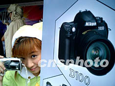 七月四日下午,在廣州太平洋數(shù)碼節(jié)上,尼康數(shù)碼寶貝活躍在廣州街頭,為尼康系列數(shù)碼相機促銷。作者:陳文