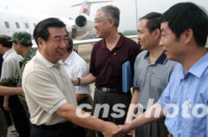 七月五日,國(guó)務(wù)院副總理回良玉乘專機(jī)抵達(dá)安徽阜陽(yáng)機(jī)場(chǎng),前往淮河抗洪前線,看望受災(zāi)群眾,查看災(zāi)情。中新社記者:盛佳鵬