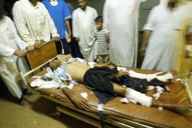 爆炸發(fā)生在拉馬迪,在伊拉克首都巴格達(dá)西部約100公里,圖為在拉馬迪“薩達(dá)姆”醫(yī)院接受救治的伊拉克警察。