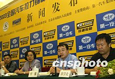 2003年“佳通輪胎杯”中國汽車拉力賽將于7月16-17日在長春市重燃戰(zhàn)火,本次比賽路線全長584.65公里,特殊賽段為147.84公里,全部為砂石路面,來自全國的40多輛賽車近百名車手將參加本次比賽。一汽-大眾銷售公司副總經(jīng)理付強(右二)在8日的新聞發(fā)布會上表示,將繼續(xù)支持中國汽車運動事業(yè)。中新社記者:趙振清