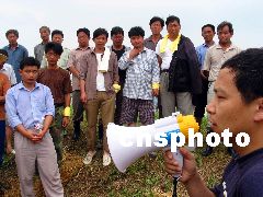 7月9日,蚌埠水利設(shè)計(jì)院專家許曉松來(lái)到行洪口大堤,為防汛隊(duì)員講解護(hù)堤應(yīng)注意的技術(shù)問(wèn)題,不讓洪水輕易入侵行洪區(qū)3.8萬(wàn)人的家園;春影霾憾位吹剃愖幼煨泻榭陂L(zhǎng)1500米,在淮河更大的洪峰到來(lái)時(shí),將在該行洪口炸壩泄洪,以確保城區(qū)安全。劉兵生 攝