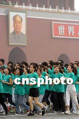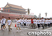 另外,由北京市體育局主辦的“北京申奧成功兩周年萬人長跑”活動于今天早上八時(shí)舉行,參加長跑者由天安門廣場東口出發(fā)向北至廣場東側(cè)路北口,經(jīng)天安門,西長安街,復(fù)興門內(nèi)、外大街,復(fù)興路至中華世紀(jì)壇結(jié)束。