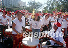 中新網(wǎng)7月14日電 香港昨日擊鼓創(chuàng)造三項(xiàng)世界紀(jì)錄,二千多名鼓手同時(shí)敲擊中國鼓﹑世界最大的中國鼓和銅鑼。香港中樂團(tuán)主辦的“香港鼓樂節(jié)”昨天下午在維多利亞足球場舉行“澎湃活力,香港同心”開幕式,打破三項(xiàng)世界紀(jì)錄。