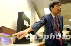 香港商業(yè)罪案調(diào)查科專家余社長(zhǎng),7月18日向新聞界講述偽鈔辨別方法。香港警方7月17日搗破了一個(gè)制造偽鈔的工場(chǎng),檢獲一批面值一百元的偽鈔和制造工具。中新社記者:洪少葵