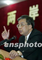 正在云南麗江舉行的兩岸關(guān)系論壇十八日舉行大會發(fā)言,大陸臺灣問題專家李家泉教授在發(fā)表演講。中新社記者:毛建軍