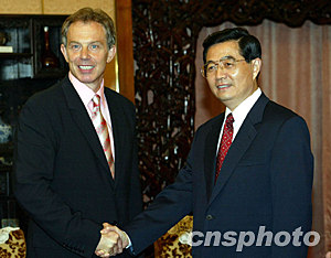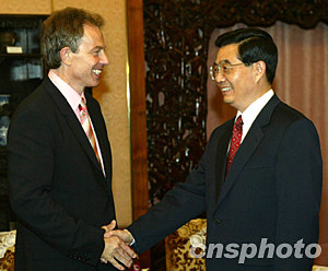 組圖:國(guó)家主席胡錦濤會(huì)見英國(guó)首相布萊爾