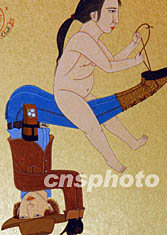 七月二十二日在香港藝術(shù)館舉行的“香港藝術(shù)雙年展2003”新聞發(fā)布會上,石家豪的作品《雙子俱樂部》(水墨設(shè)色金紙板八幅),獲優(yōu)秀獎。 中新社記者:錢興強