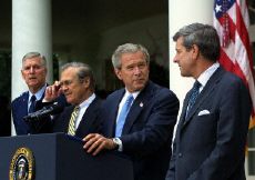 布什說,目前有19個(gè)國家派部隊(duì)到伊拉克協(xié)助維持安定工作,陸續(xù)還會(huì)有其它國家派兵加入,另有20余國提供重建基金。他對(duì)伊拉克在臨時(shí)政府最高行政長(zhǎng)官布雷默的領(lǐng)導(dǎo)下,迅速回歸正常生活,并重建為自由民主國家,表示充滿信心。