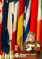 中新網(wǎng)7月24日電第五屆亞歐經(jīng)濟(jì)部長(zhǎng)會(huì)議于今天上午9點(diǎn)在遼寧省大連市香格里拉大酒店舉行,國(guó)務(wù)院副總理吳儀出席會(huì)議開(kāi)幕式并致辭。