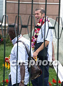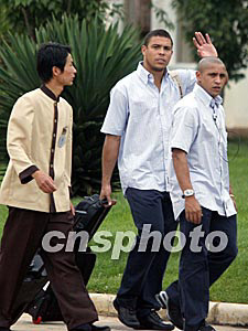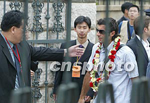 隨后下車的羅納爾多、齊達內(nèi)、菲戈、勞爾等巨星的號召力顯然不如剛剛加盟皇馬的貝克漢姆,圍在身邊的記者要少許多。趁此之機,本社記者在第一時間采訪了菲戈,菲戈告訴記者,這是他第一次到中國大陸,感覺很不錯。