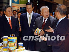 七月二十五日,香港行政長官董建華參觀正在此間舉行的“香港家庭用品展及香港禮品及贈品展”。作者:潘索菲