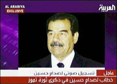 薩達(dá)姆的兒子庫(kù)賽和烏代是在7月22日在和美軍士兵的一次槍戰(zhàn)中被打死的。29日播出的錄音帶也是在一周內(nèi)出現(xiàn)的第二次據(jù)稱來(lái)自薩達(dá)姆的錄音講話。