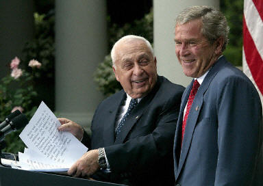 中新網(wǎng)7月30日電 美國(guó)總統(tǒng)布什和以色列總理沙龍29日在華盛頓舉行了會(huì)晤,磋商中東和平進(jìn)程的未來(lái)。