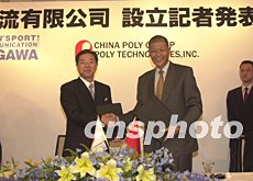 中國保利集團與日本佐川急便30日在東京宣布,他們將聯(lián)手投資一千多萬美元,在深圳成立中國首家中外合資綜合性物流企業(yè)“保利佐川物流有限公司”。圖為保利集團總經(jīng)理賀平與佐川急便社長真鍋邦夫交換合同文本。中新社記者:陶光雄